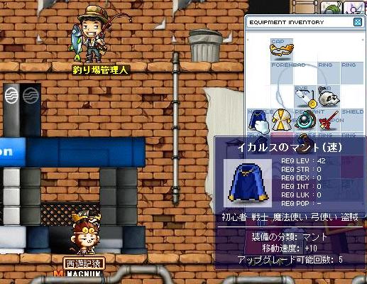 イカマンクエストにて、イカルスのマント(速)が手に入りました!
